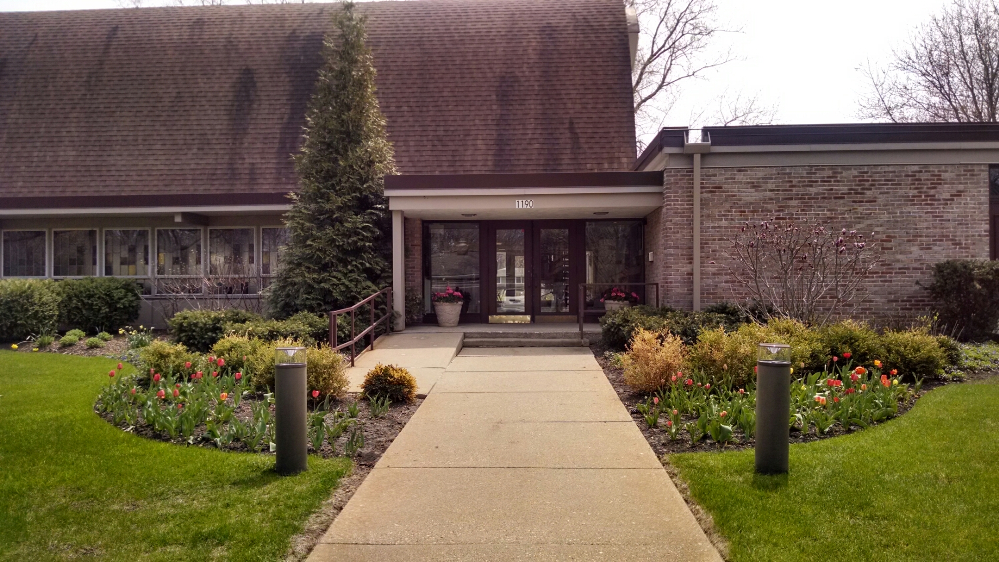 It is always so beautiful. When it was snowy, it was packed so high from shoveling that it was over my knees. Such a sight to see for this southerner. When it’s fall, there’s so many amazing colors. But my favorite, at least for this very brief walk from my car to the door, is the tulips in spring. Such beautiful flowers.